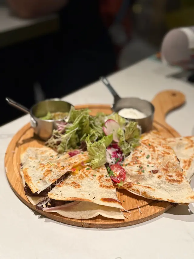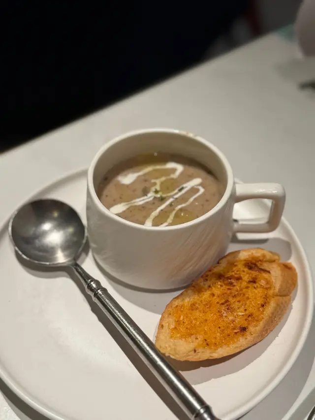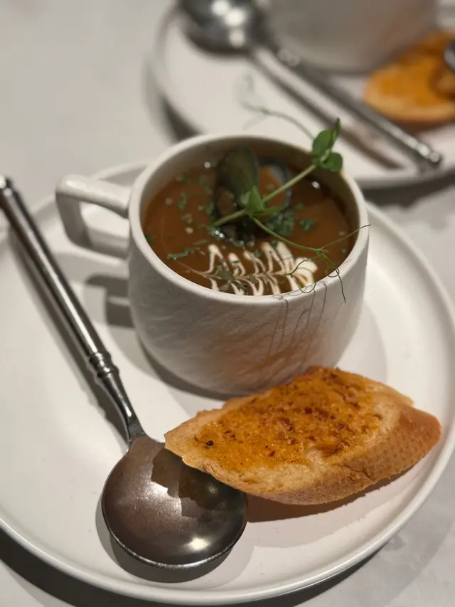 首先上枱嘅係 牛面頰墨西哥芝士餡餅 🌮,外皮煎得香脆,裡面嘅牛面頰肉一絲絲,非常軟腍,配上拉絲芝士,邪惡但好味到停唔到口!跟住試咗兩個湯:黑松露牛肝菌蘑菇湯 香濃到不得了,每一啖都係濃郁菌香🍄;而 法式龍蝦海鮮濃湯 🦞就真材實料,飲到龍蝦嘅鮮甜,兩款都推介!