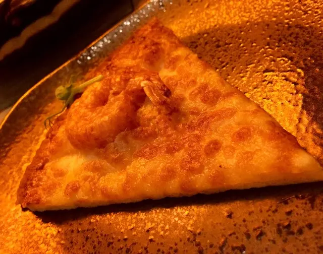 我們點了一個比較特別的 pizza ~ 黃金流沙炸蝦薄餅,當中加入了近年最流行的鹹蛋黃。薄薄的 Pizza, 入口香脆,帶有咸蛋黃的鹹香,口感不錯。不過咸蛋黃味已經蓋過一切,完全吃不出炸蝦的味道。