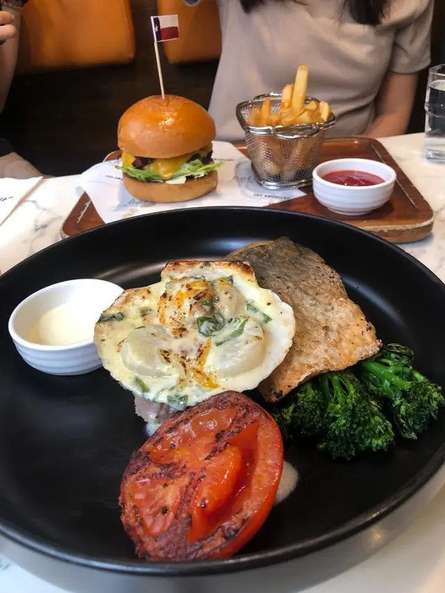 足料多餡嘅美式漢堡🍔 愛撞板女孩等级42022-10-101K 浏览 关注 荔枝角返工當然有好多好野食,今次就去呢間隱世工廈Burger專門店,我每個月基本都會同同事食一次The Americano By Texas Burger,餐廳主打美式漢堡,全日早餐,奶昔及精品咖啡☕️💫招牌菜:德州燒烤漢堡 衝突六安士的煙燻牛肉足料多汁,牛肉肉質豐富、味道濃郁,賣相亦十分精緻, 其特製的燒烤醬汁惹味香口,配合帶少少脆身的麵包一口咬下,回味無窮;配餐的薯條不算是草書,但絕不失色,粉漿剛剛好,入口脆身亦不油膩 💫帶子深海鱸魚 美式餐廳比較少有的海鮮菜式,味道令人驚喜,海鱸魚魚皮薄脆,魚肉嫩滑,配以Creamy 的帶子,口感十分豐富 💫整體環境工業風,顏色亦比較粗獷看得出裝潢有花過心思,整體空間感十足,坐得都舒服,鬧市中增添一點休閒以上食记乃用户个人意见 , 并不代表OpenRice之观点。赞好分享足料多餡嘅美式漢堡🍔 The Americano By Texas Burger https://s.openrice.com/QrLT0pxb500检举 张贴 评分4味道4环境4服务4卫生4抵食用餐日期2022-05-26用餐途径堂食人均消费$100 (午餐)