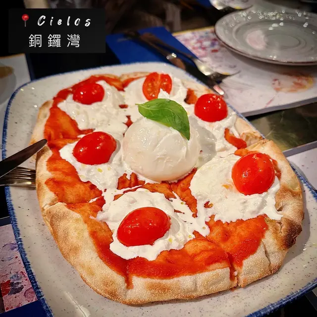 就係比呢個pizza吸引左嚟食!個賣相真係好靚好啱打卡呀😆 中間放左大大舊布袋芝士🧀,切果陣仲有少少流心效果添~上面鋪左啲車厘茄同埋basil,味道而言就冇咩特別不過不失咁啦,有啲不足就係個餅底唔夠脆...
