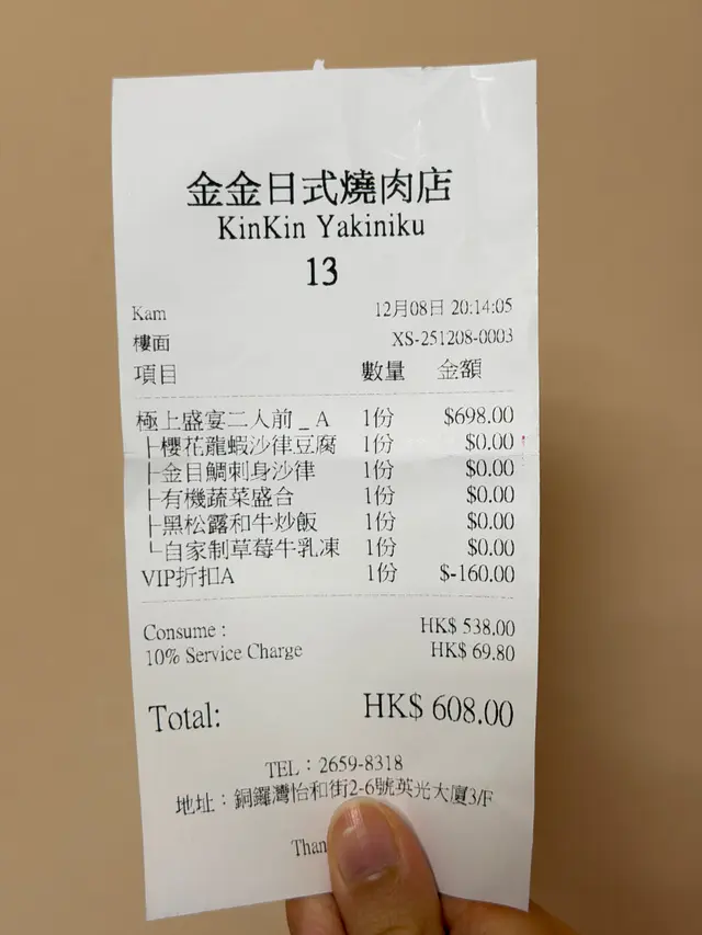 超抵食,連加一$608二個人,有齊和牛、刺身、蟹腳…滿足曬我所有的願望,仲要碟碟都好大份,超飽肚。