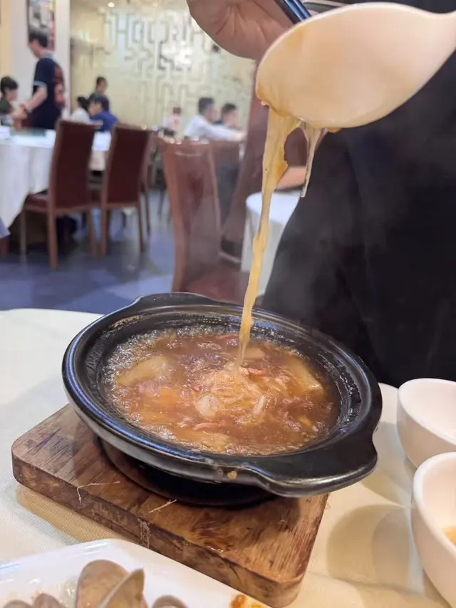 秋冬飲呢個簡直暖到入心!個翅煲用料超足,打開蓋就聞到濃郁嘅鮮香,湯底紅亮濃稠,係熬煮咗好耐嘅老火味。魚翅軟滑爽口,咬落去有淡淡嘅膠質感,竹笙則吸飽咗湯汁,入口爽脆多汁,每一口都鮮味爆發~❤ 飲完成個身暖笠笠,驅寒又滋補,女生一定鍾意!