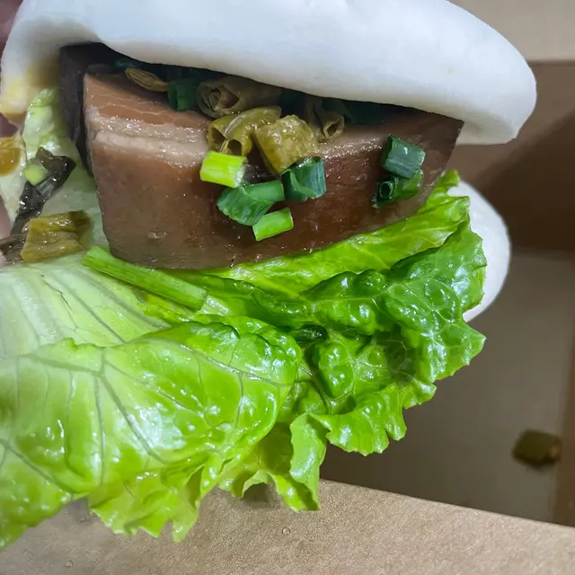 刈包軟熟😯好易咬又唔會好乾身😜 入面夾左一大舊腩肉😳厚厚腩肉肥瘦適中🫢配埋生菜蔥花🤪味上加味😜喜上加喜🤓