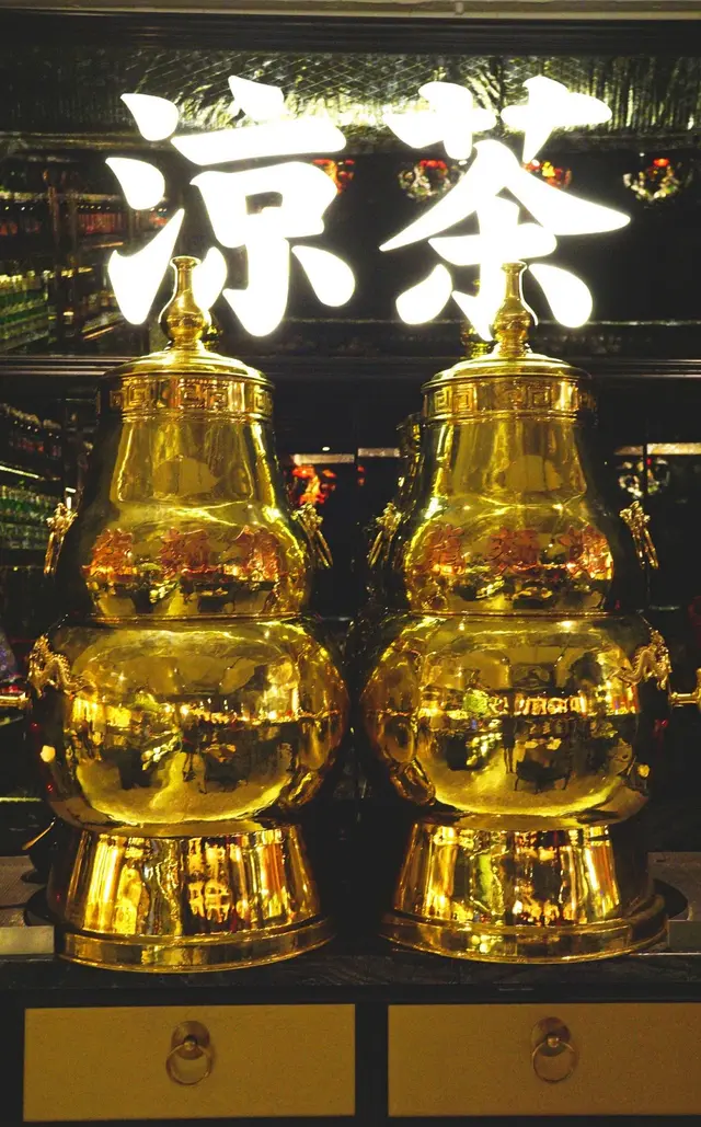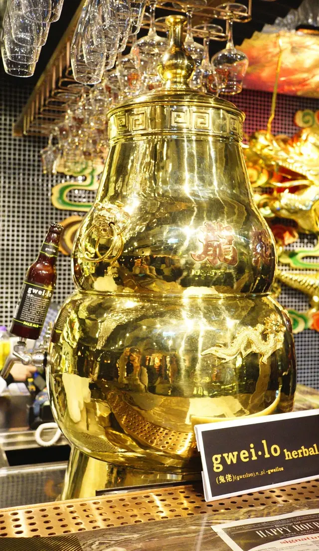 於舊式涼茶舖盛載涼茶的金葫蘆, 改裝過後變成盛載老外涼茶 - 啤酒, 同出一轍的功效。