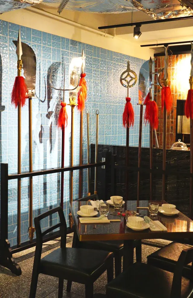 店面高掛的中式牌匾, 大門把手的雙截棍, 舞獅用的大鼓等, 剛踏入食店已甚有功夫睇頭, 內裡到處更充滿武術元素。