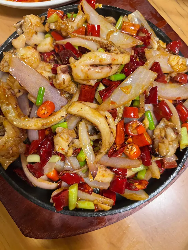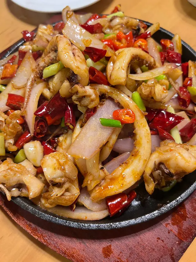 這道菜的魷魚肉質鮮嫩,口感十分爽口,配上四川特有的麻辣調味,