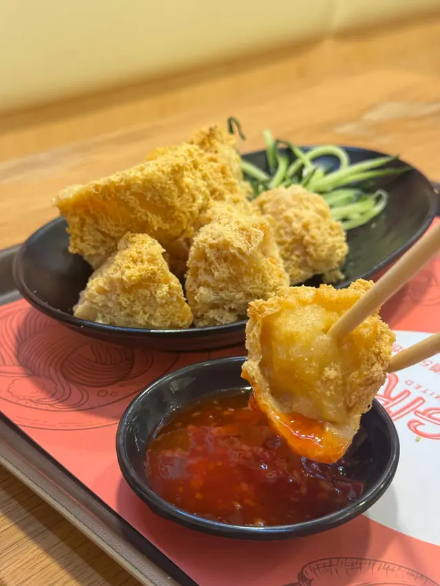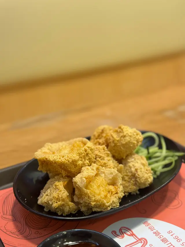 反斗豆卜墨魚膠:有別於坊間墨魚膠,用上炸豆腐方式包裹墨魚膠,充滿濃郁豆香味,外脆內軟,墨魚膠彈牙,蘸上泰式辣醬,更加惹味。