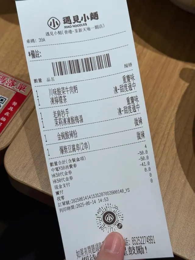 兩個麵食有啲酸菜炸菜另外有個自助位