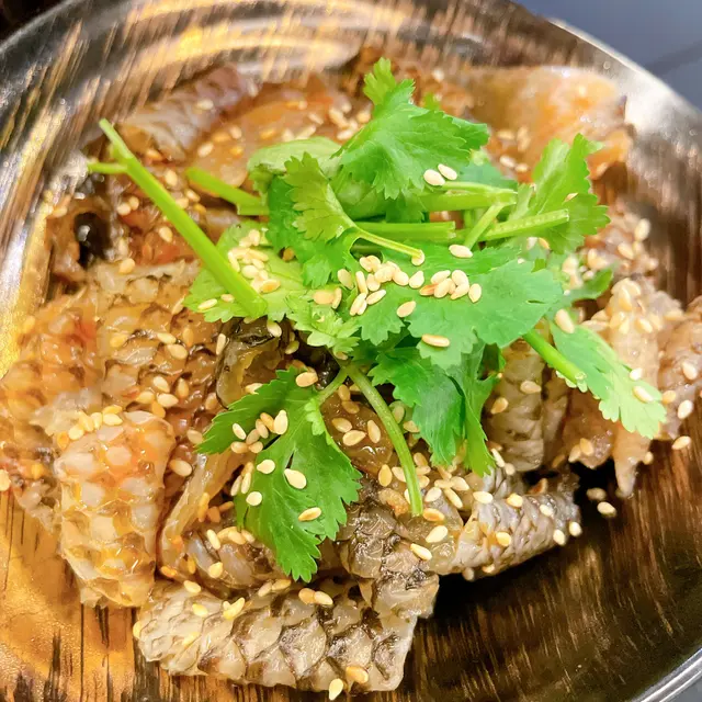 魚皮脆到似食緊薯片,但多咗層海鮮鮮味!藤椒香氣攻鼻唔嗆喉🌿,麻得嚟帶住微微甜,底汁仲有啲冰鎮住🧊,夏天食真係透心涼~
