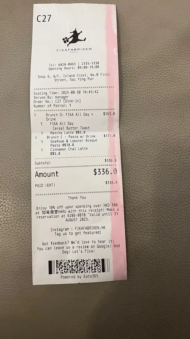 📍 FIKAFABRIKEN (西環) 西營盤第一街8號縉城峰地下6號舖