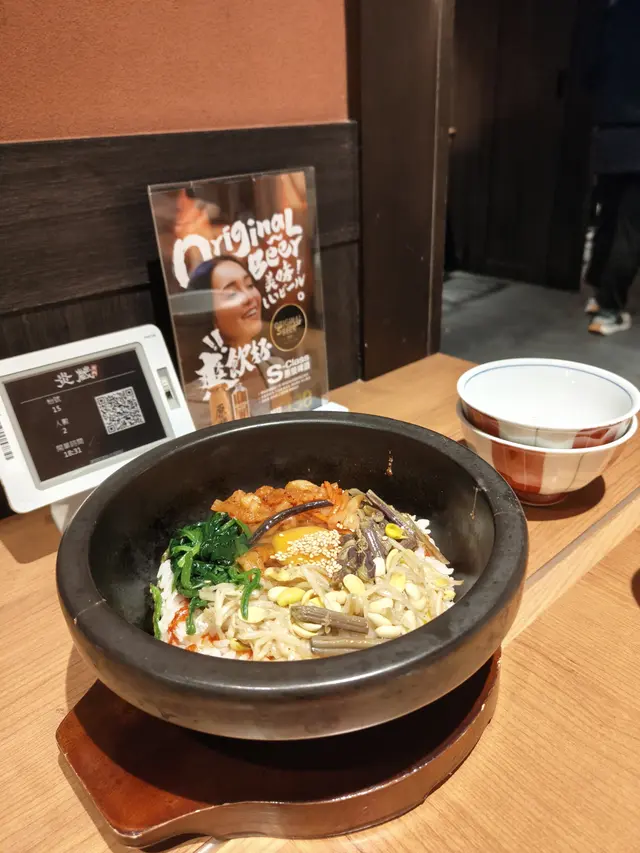 熱騰騰上桌,鋪滿新鮮蔬菜,拌勻後風味絕佳,底部還有香脆飯焦
