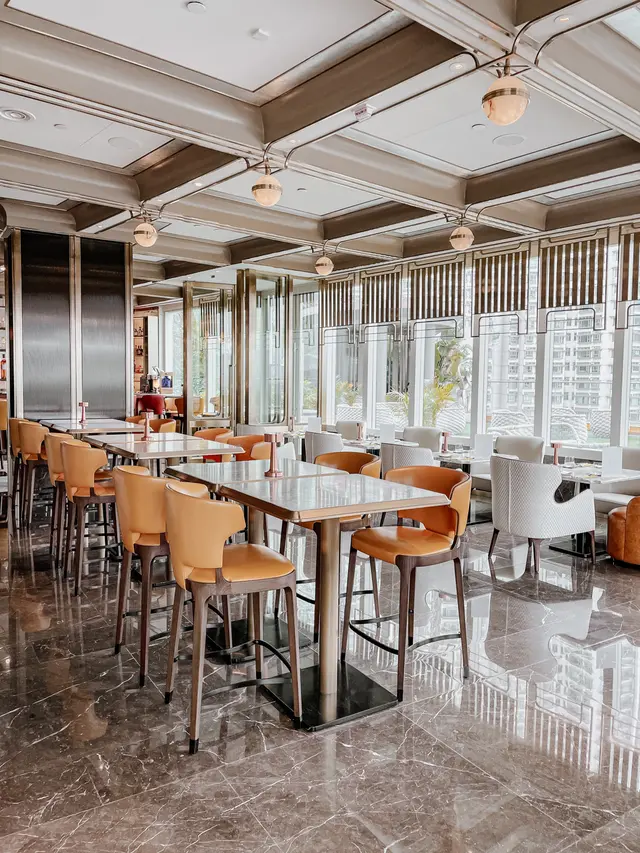 長廊盡頭就看到舒適時尚的西餐廳 ᴛʜᴇ ᴘᴀᴠɪʟɪᴏɴ格局氣派又具空間感 景觀開揚 可遠眺機場景色