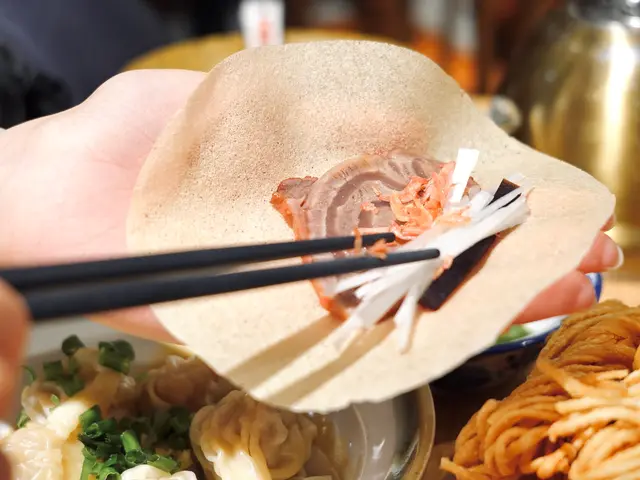 可以自行夾入酸甜話梅條、辛辣大蔥絲、櫻花蝦、醃蘿蔔