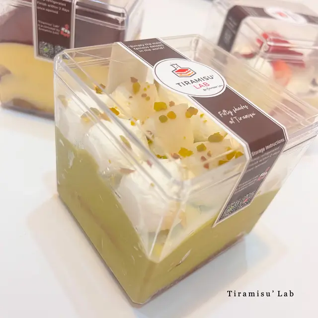 除了供應原味Tiramisu外,重有創新款式,包括開心果、士多啤梨、芝麻、綠茶紅豆及香芒椰子的特色口味 我就要咗個開心果、士多啤梨同埋原味