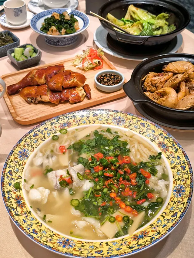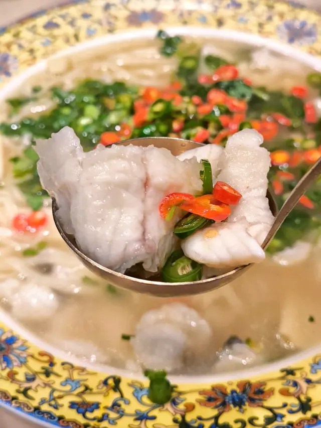 呢度除咗粵菜小炒出色之外~亦主打正宗川味菜🌶️🌶️所以我哋都忍唔住叫番其招牌魚試試~有辣有唔辣嘅選擇~最後商量後揀咗呢款唔辣嘅鮮青椒🫑清香魚~魚片肉質嫩滑~湯頭清徹鮮味~仲有寬粉於其中~下次要試埋其他口味先得😋