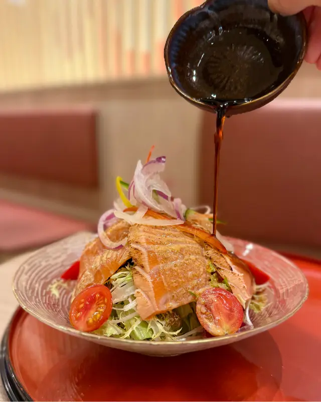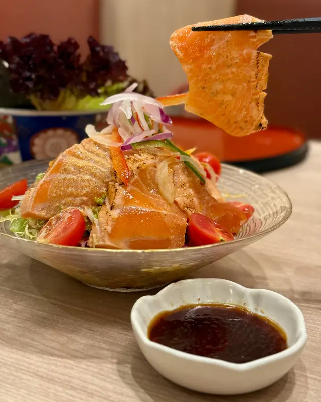 沙律通常都係配煙三文魚,不過依個就用三文魚灸燒,滲出魚油。而且份量都唔少,更有誠意🧡