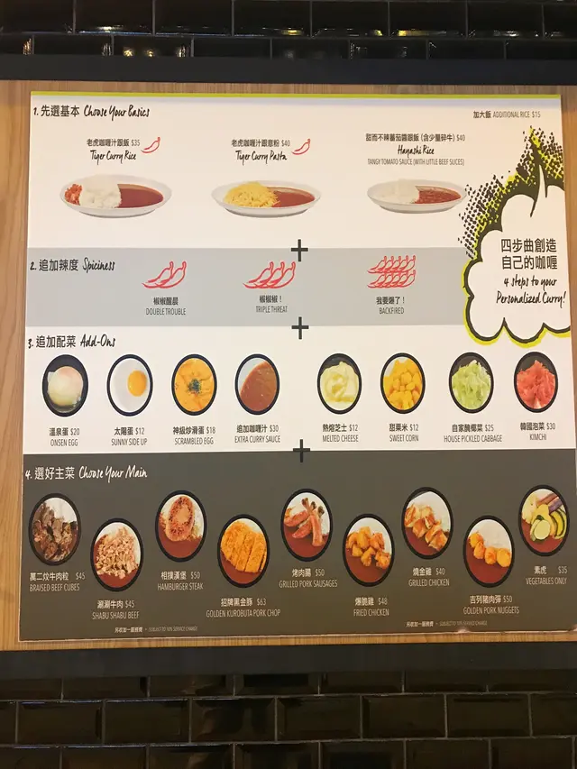 Tiger Curry主打日式咖喱,點菜方程式大致如下 -