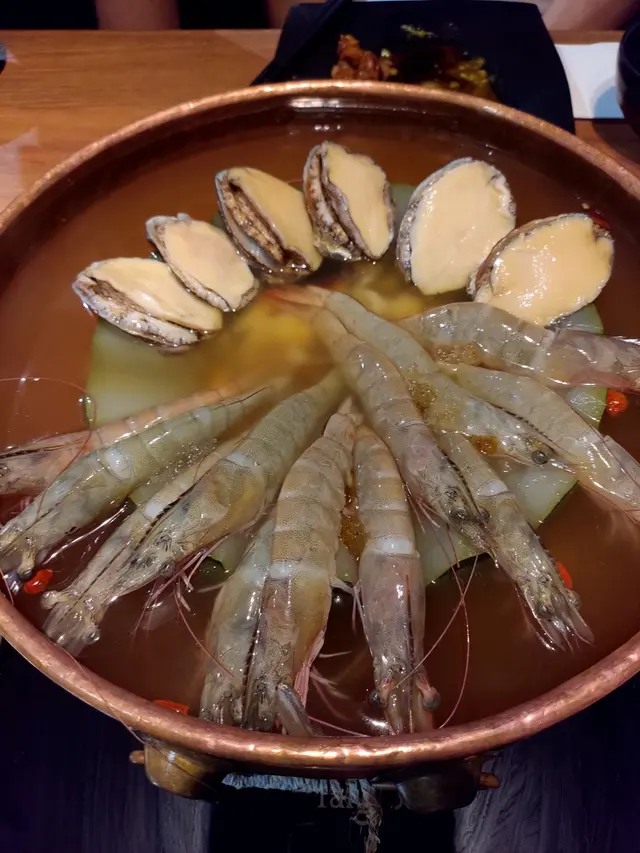 重點當然係依個養生鍋啦,一打開見到有六隻飽魚同蝦😍😍底下仲有一大舊冬瓜,店員話滾起後就當湯飲左先。味道好鮮甜,有啲似係酒樓飲既冬瓜😀,用依種湯底打邊爐都係第一次,味道一流!突然覺得原來打邊爐都可以甘健康
