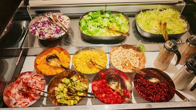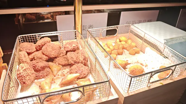 自助區供應沙律、湯、蔬菜、關東煮、炸物、飲料、甜品等,重點係自己DIY牛角飯。