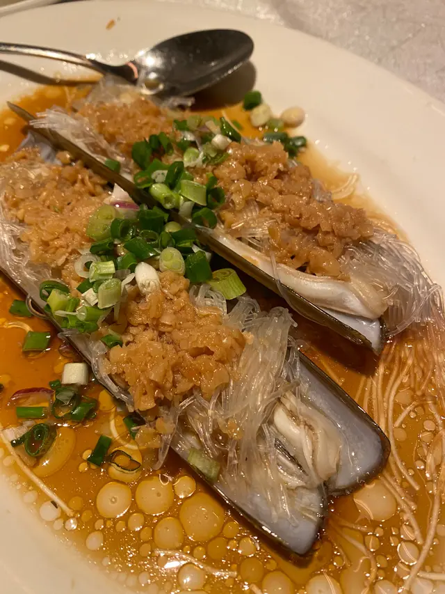 大號蟶子清蒸要保持爽口彈牙,時間控制極其重要,多一分鐘少一分鐘效果已經可以有天淵之別。粉絲徹底吸收蟶子的鮮甜與蒜香結合的精髓,與主角分庭抗禮。