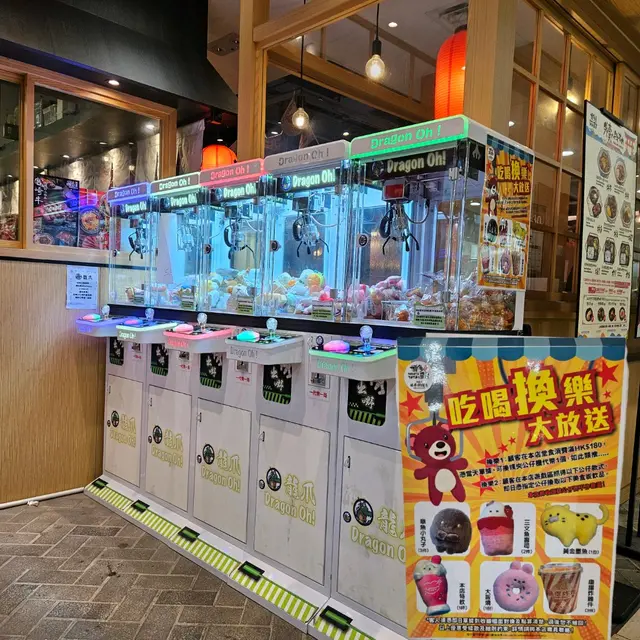 最後埋單時收銀員送上一個代幣,表示可在店旁嘅夾公仔機玩一局。