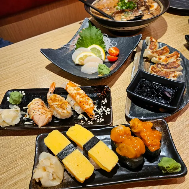 玉子壽司、三品壽司盛、蒜味螺肉軍艦,味道唔錯,由其係優惠價嘅三品壽司,火炙皇帝蟹棒、玻璃蝦、三文魚壽司各一件,師傅喺上面加咗調味火炙,脆脆地好香口。