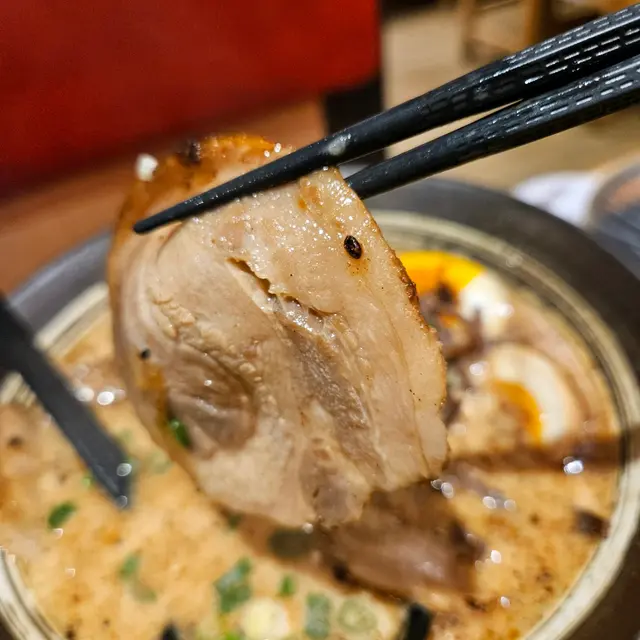 黑蒜油腩肉拉麵,好香黑蒜油加濃郁豬骨湯底,日式叉燒好食,溫泉蛋好幼滑。