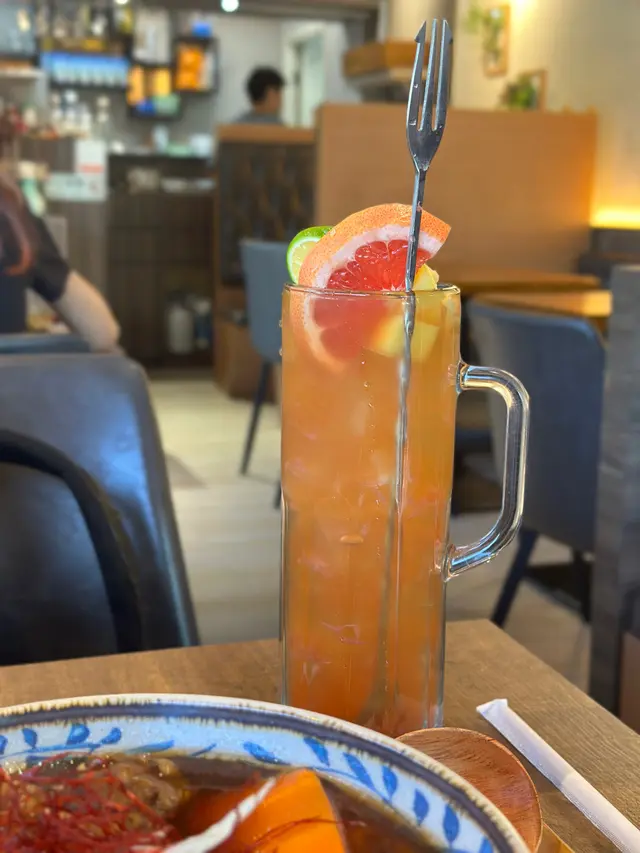 🔸 木玥招牌水果茶 —— 大到誇張嘅巨杯🍍!滿滿新鮮菠蘿、蘋果、西柚,酸甜清新,飲完仲可以食埋生果~