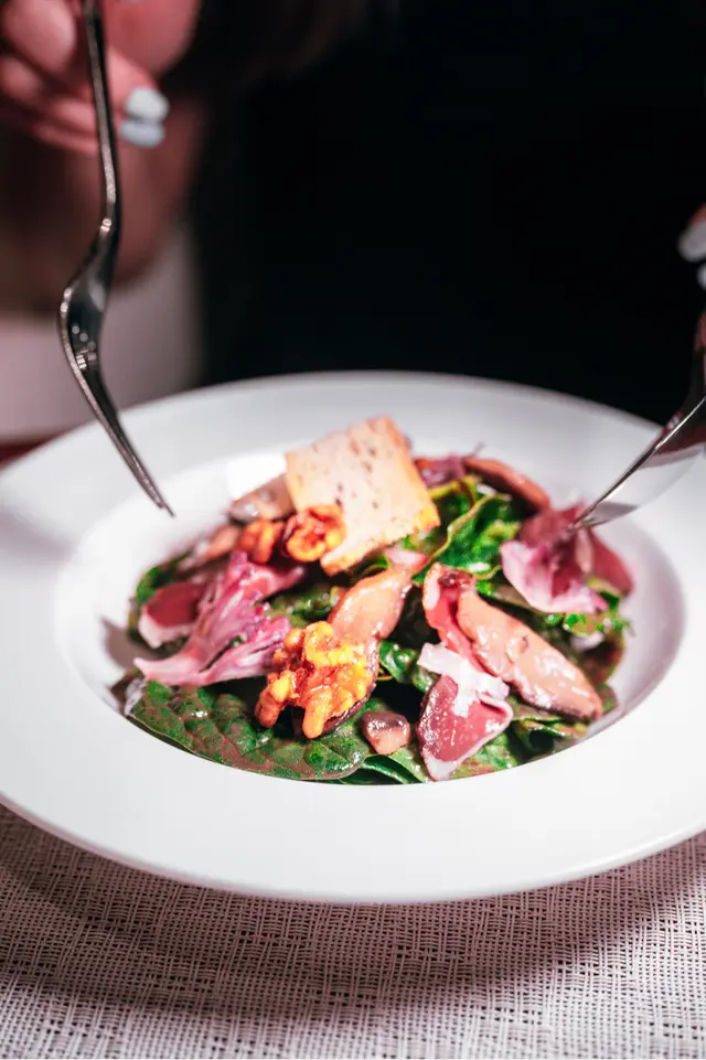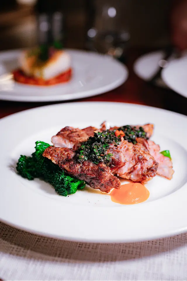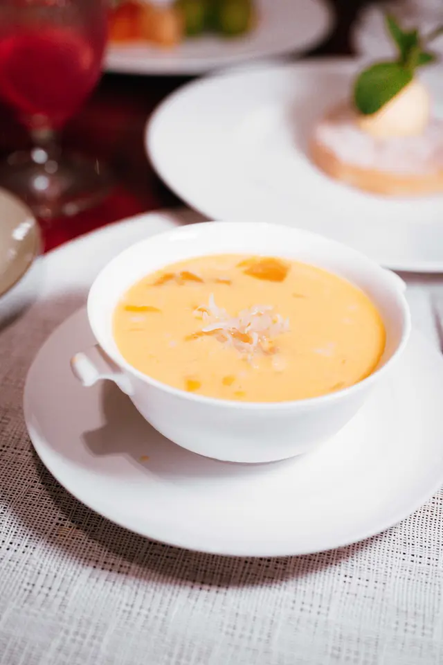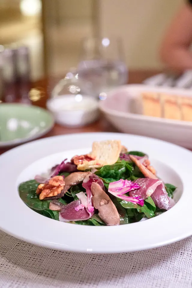 當晚的餐點包括暖菠菜沙律配風乾鴨胸 Warm Baby Spinach Salad with Duck Breast,酸香開胃,鴨胸鹹香與沙律的果香相當合拍;龍蝦濃湯 Lobster Bisque 味道香濃但不膩,口感順滑。主菜方面,蘑菇意大利粉 Tagliatelle Mushroom Alfredo 醬汁香滑,味道較平實;香烤白鱈魚 Oven Roasted Toothfish Fillet 外層香脆、魚肉嫩滑,配上青醬與蔬菜,味道清新;燒伊比利亞豬肩 Roasted Iberico Pork Presa 火候掌握不錯,肉質結實又有肉香。甜品則有蘋果金寶 Drunken Apple Crumble,熱騰騰配雪糕,口感豐富;楊枝甘露 Mango & Pomelo Sago 清爽輕盈,是個不錯的收尾。