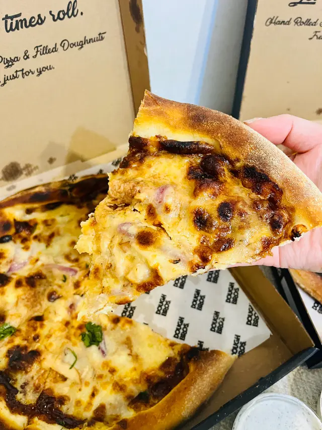 餅底搽上左滿滿嘅 BBQ 醬,上面再鋪上雞肉、水牛芝士、紅蔥頭同埋香菜 🤤 BBQ 口味比較濃烈,而且雞肉都幾多,差唔多啖啖都有 😋 酸種嘅餅底中間比較薄身鬆軟,批邊就硬少少好有咬口,整體比較煙靭,口感唔錯,而且都幾香 🤩