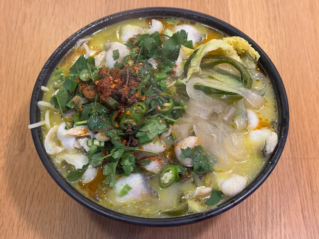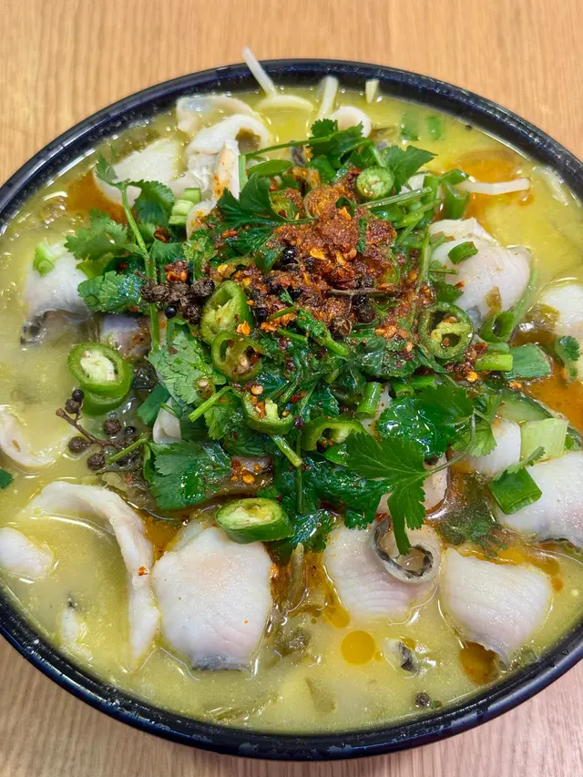 $78「酸菜魚配紅薯寬粉」:大大碗熱辣辣,要咗BB辣已經味道濃郁😋;魚肉夠鮮甜😋;除咗有酸菜之外其他配菜包括有大豆芽菜、青瓜、娃娃菜、芫荽、青椒、花椒 等,幾豐富😋;紅薯寬粉就有啲啲煙韌🤩