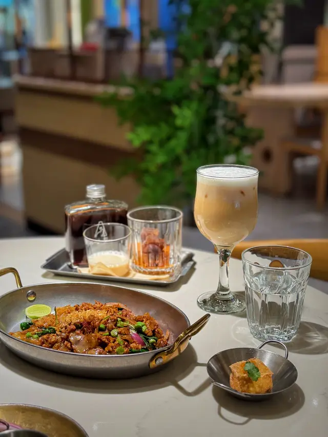 強烈的伯爵茶味道與鮮奶平衡配搭.泰式奶茶雪成冰粒,混入香濃咖啡及幼滑鮮奶,撞出醇厚鴛鴦,喜歡!餐廳飲品款式特別多,創意手工甜品與摩登雞尾酒也很打卡,值得回頭試齊!