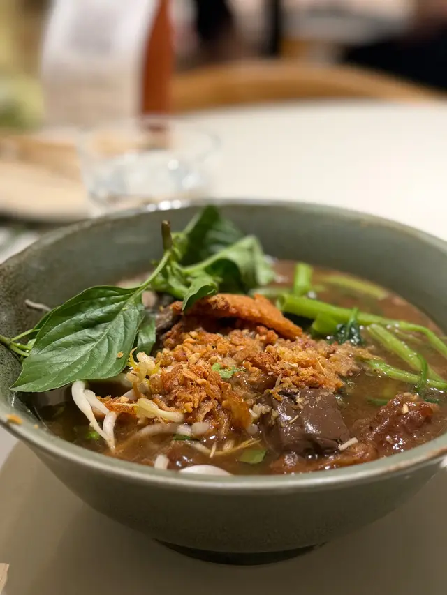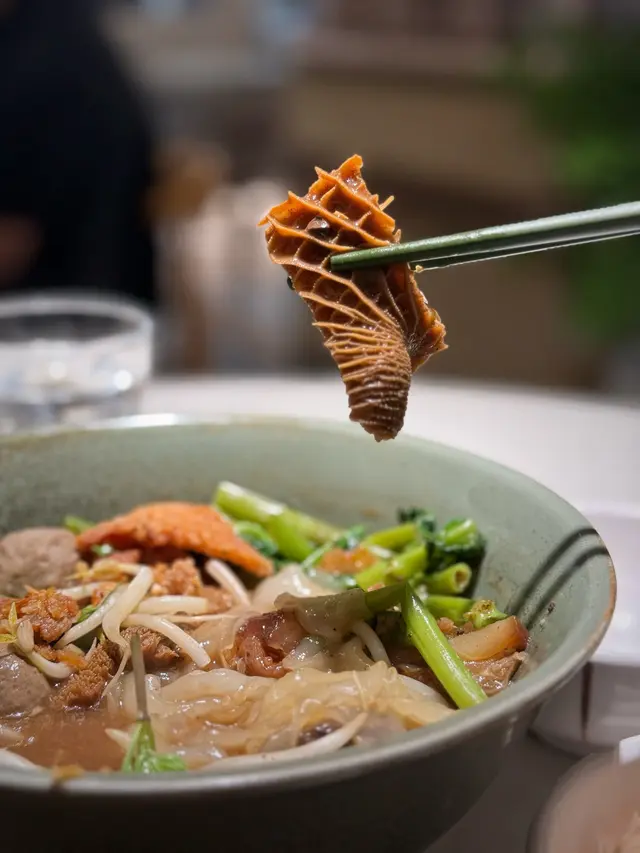 有牛丸、牛腱、牛肚、豬紅及通菜等,配料極度豐富.而且牛肚大片又軟熟,牛丸又彈牙,配搭著帶淡淡藥材香的湯底,份量十足