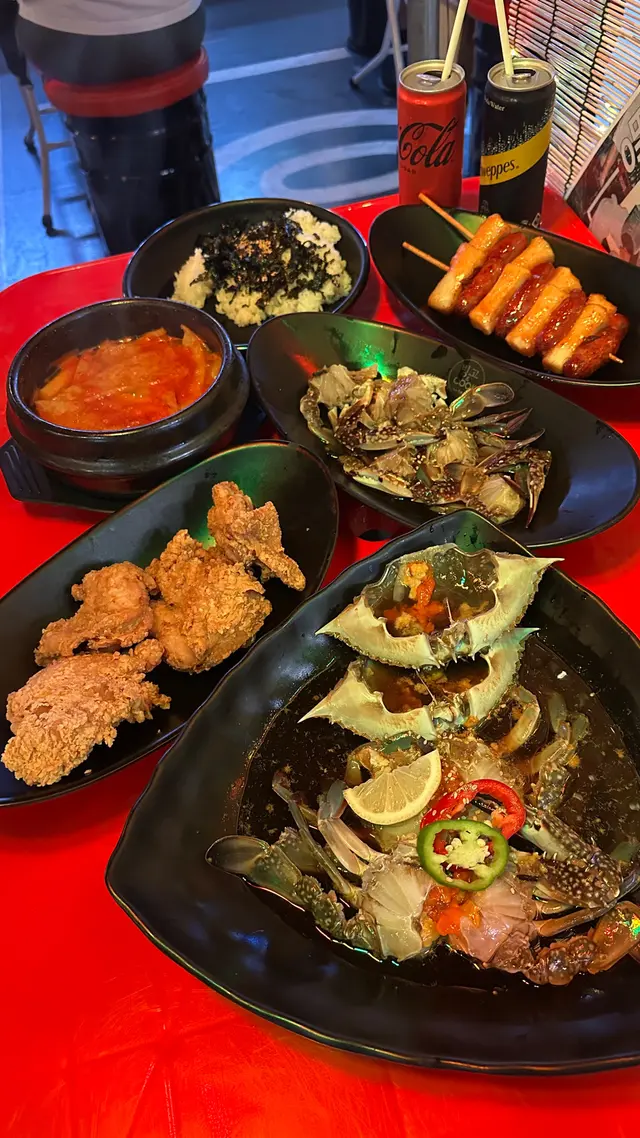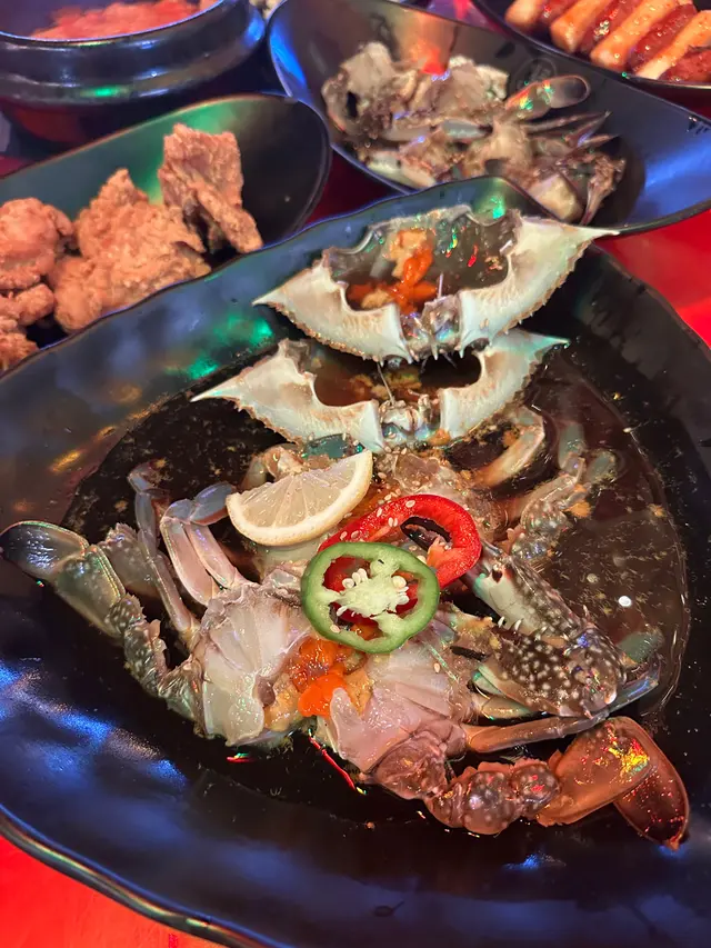 醬油蟹任食放題🦀 EuniceSha等级42025-06-2170 浏览 关注 香港竟然有得食醬油蟹放題❣️🥳呢間位於銅鑼灣嘅韓國菜,店員全部都係韓國人,裝修環境亦都置身韓國咁🇰🇷啲音樂完全match晒!.1️⃣醬油蟹🦀第一round可以公蟹或者乸蟹,之後可以無限任添!最正梗係要清晒啲膏啦~2️⃣烏冬炒年糕用石鍋裝住,用咗香辣年糕醬,好惹味😍烏冬同年糕都索晒啲汁3️⃣炸雞🍗勁juicy,皮炸到薄身,唔覺好肥膩🤭4️⃣年糕香腸串勁大件,搽咗蜜糖好香甜🍯年糕勁煙韌,外皮炸過嚟,會脆脆地!5️⃣飯紫菜飯係必食的😍🍚6️⃣罐裝飲品🥤以上食记乃用户个人意见 , 并不代表OpenRice之观点。赞好分享醬油蟹任食放題🦀 Bingo & Cook (京都廣場) https://s.openrice.com/QrLT0OFjS00检举 张贴 评分5味道5环境5服务4卫生4抵食用餐途径堂食