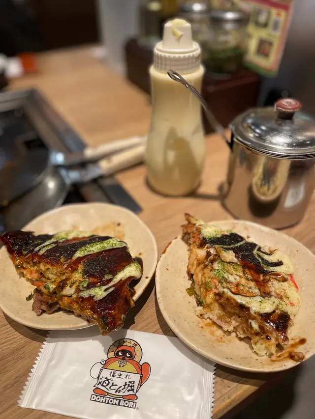 由於用上同樣的調味(蛋黃醬、醬汁、海苔粉及鰹魚片),基本上味覺跟「御好燒」相似,不過「廣島燒」比較飽腹和多層次。大阪燒就是吃一堆日式醬料的煎餅料理!