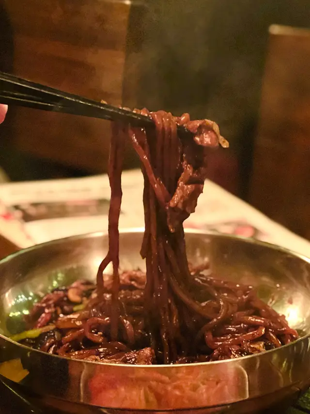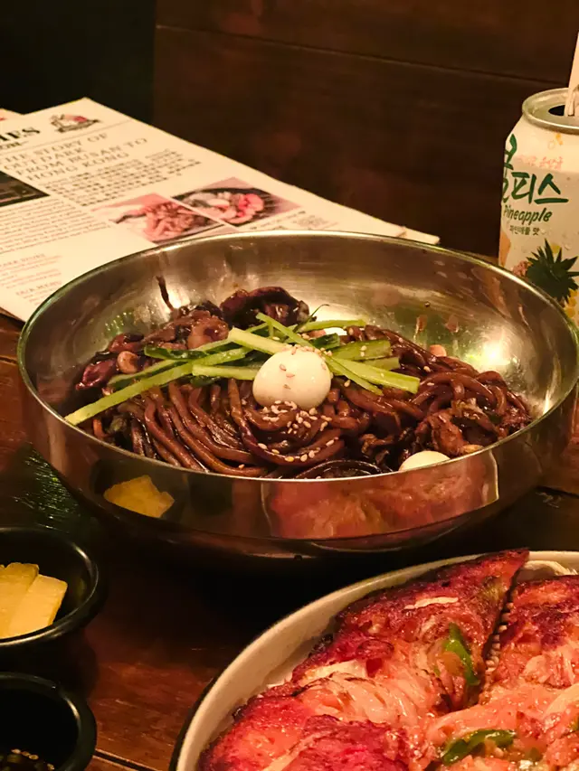 很惹味的一道菜!黑卒卒的韓式炸醬麵,配上豬肉片、鵪鶉蛋、青瓜絲、及洋蔥絲等豐富材料,青瓜絲及洋蔥能中和濃濃的醬汁🥗當中麵條口感很彈牙,每條同時掛滿炸醬,很惹味👍🏼