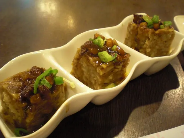 一客有3件賣$28,今餐心水至愛,其實以前都試過,知道好食,所以今次再點。蒸芋粿,以蕃薯粉、米漿、芋頭絲蒸成糕狀,再切成丁方一件件,晌上面淋上肉燥即成。芋粿很有芋香,單睇側面就見有幾真材實料,芋絲一絲絲密密麻麻咁蹤橫交錯,咬落鬆化而不易爛,肉燥醬又惹味香濃,確係好食