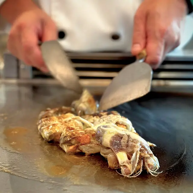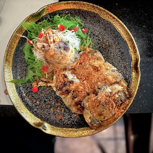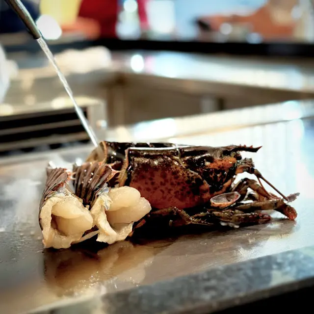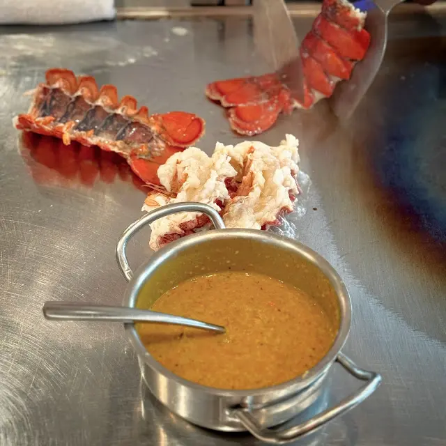 二人餐的是日海鮮斑馬瀨尿蝦則燒製成避風塘口味!經鐵板熱力親吻後瀨尿蝦的香氣被激活,散發出誘人的焦香味道。