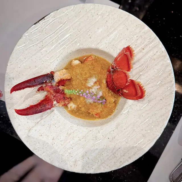 Chef Joe將一人餐的龍蝦炮製成雪燕金湯龍蝦!剛熟的龍蝦配襯以蝦羔跟南瓜製成的金湯再添上爽滑的雪燕,菜式集鮮香甜於一身吃出獨特的滋味。