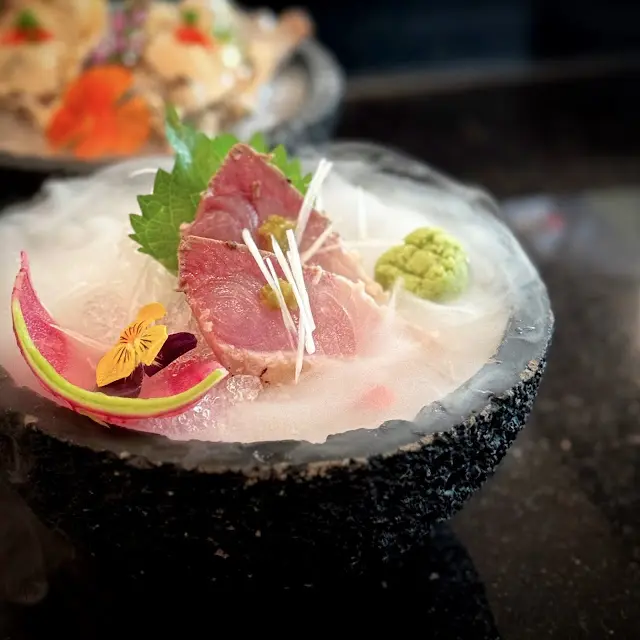 炙燒油甘魚配柚子胡椒是一人餐的菜式!肉質細膩油脂豐富油甘魚經炙燒過香氣更盛,配襯清香帶辣的柚子胡椒口感跟味道更勝刺身。