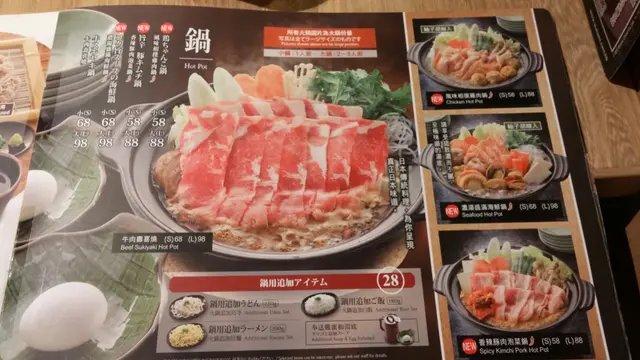 叫左個牛肉壽喜燒,細的,係日式傳統鍋湯底,甜甜地,即吉野家邊爐個款,鍋物有幾牌肥牛,感覺肥肉部位多點,熊妹唔喜歡肥