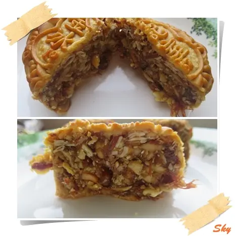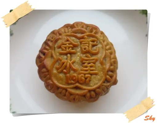 但果仁太過硬我自己又不太鐘意, 而金記這個伍仁月餅硬度就啱我口味. 而且食的時候, 還陪有淡淡的金腿的咸香味.