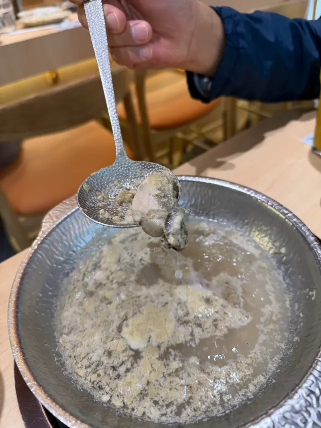 完整牡蠣熬煮出乳白色湯頭💦 海味鮮甜層次豐富,建議先喝原湯再涮食材😋😋