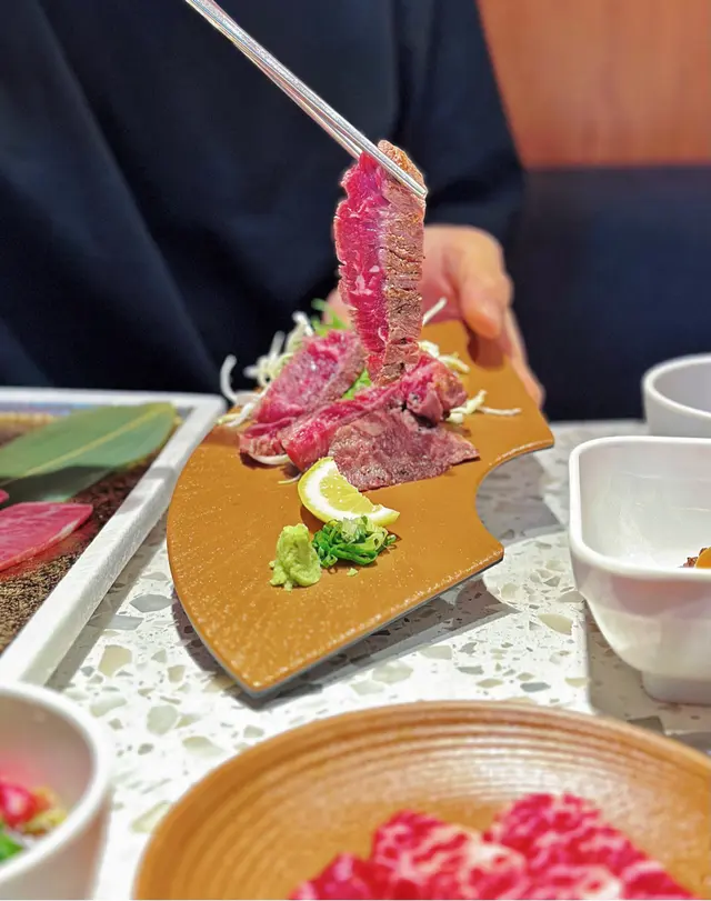 上等牛小排的肉質細嫩,入口即化,油脂豐腴卻不膩口。牛五花肥瘦相間,烤至焦香酥脆,每一口都令人回味無窮。牛舌厚切有彈性,烤後外層微脆,內裡軟嫩多汁,口感極佳。