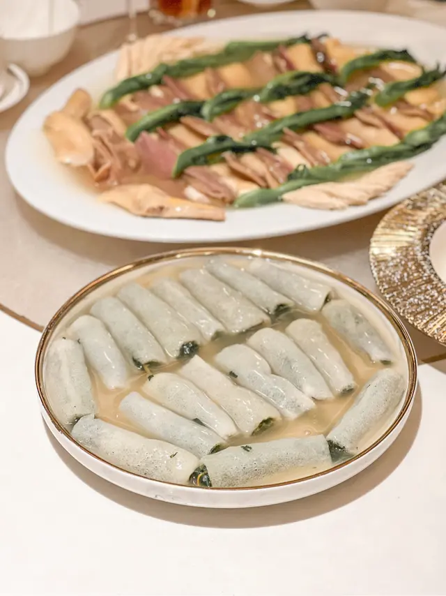我最喜愛魚翅灌湯餃、金華玉樹雞與竹笙菜苗卷🥬