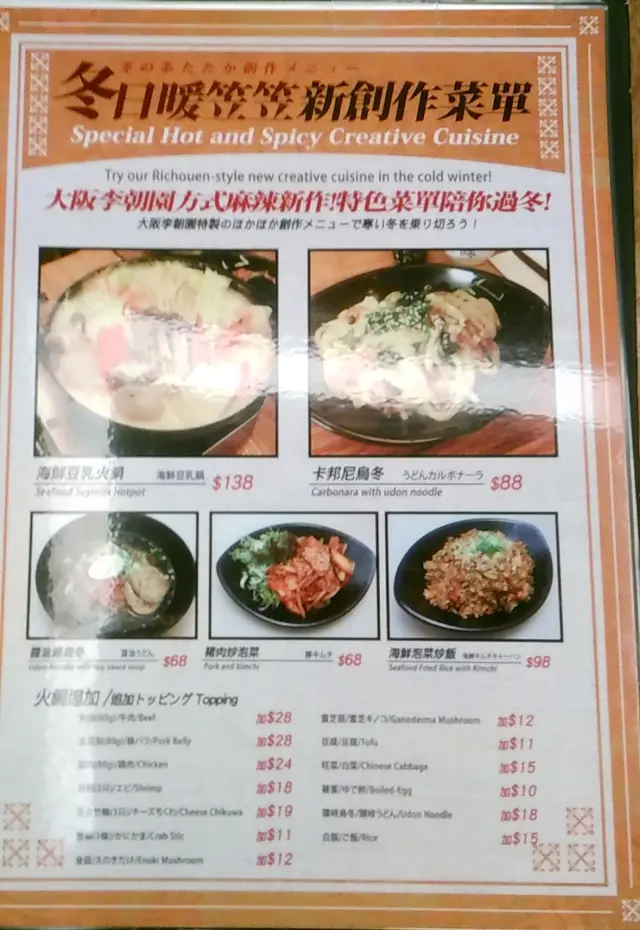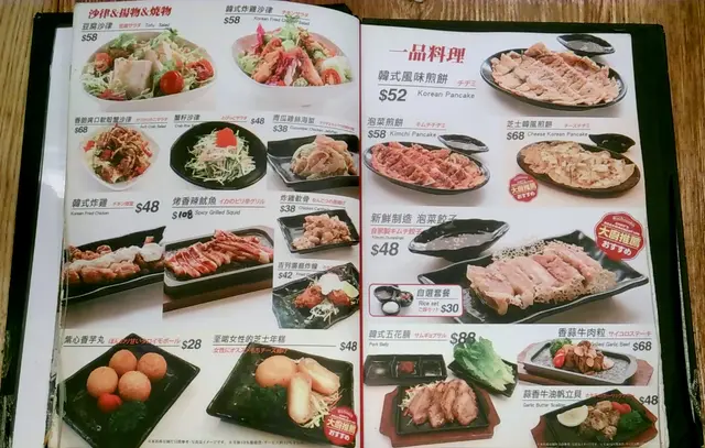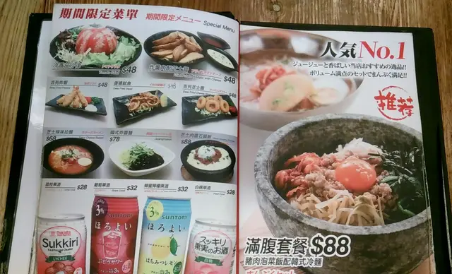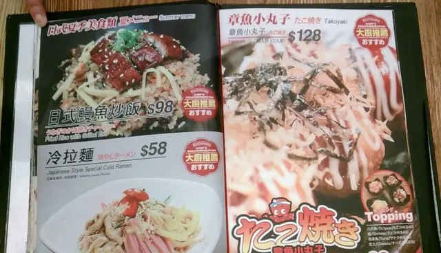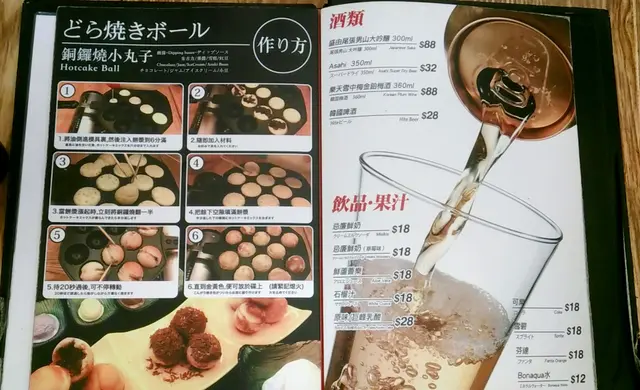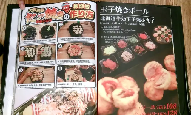 望望設計精美的餐牌,圖文並茂,很是吸引,筆者發現這店原來除了傳統的章魚小丸子,還有其他創新的牛奶王子燒,銅鑼燒小丸子和蛋包飯丸子燒,當然其他韓式食品如泡菜煎餅和石鍋飯也少不了,選擇頗多,讓人心大心細。經商量後,筆者先點了一客傳統章魚燒小丸子,還有大阪青蔥燒、泡菜煎餅和泡菜煎餃子。