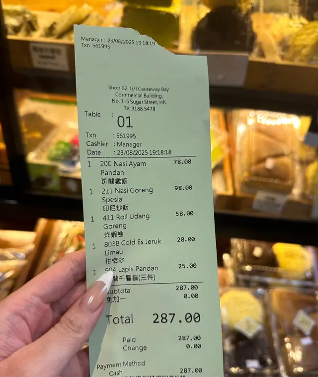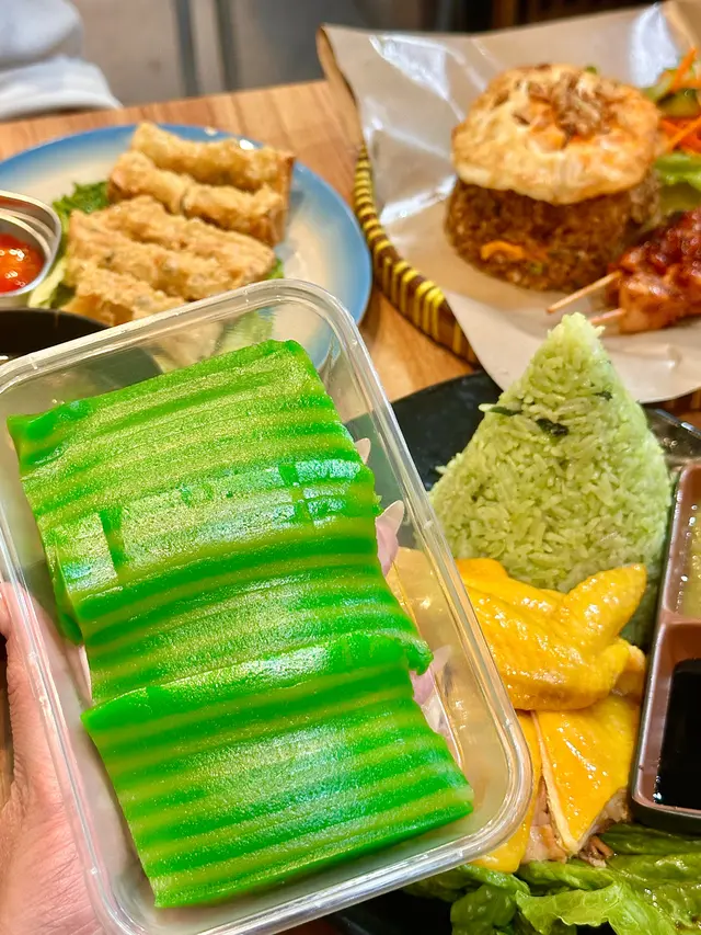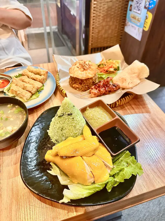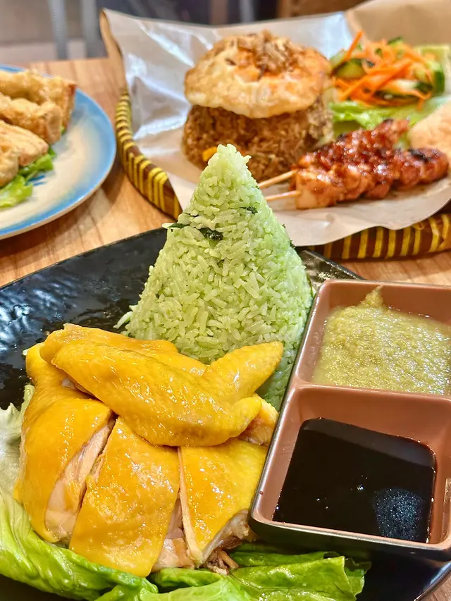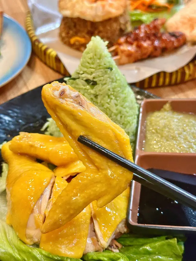 斑蘭雞飯🍚👉🏻班蘭飯係一個三角形造型好特別,食到淡淡嘅斑蘭同椰漿嘅味道🥛,雞髀肉質好滑身😋,再加埋醬油同特製嘅蔥油一齊食係絕配啊🩷,仲會送埋碗湯,湯裏面好重胡椒味👍🏻