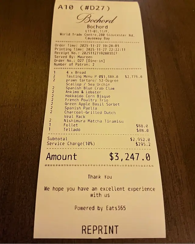✨ Tasting Menu ($1,388 p.p)