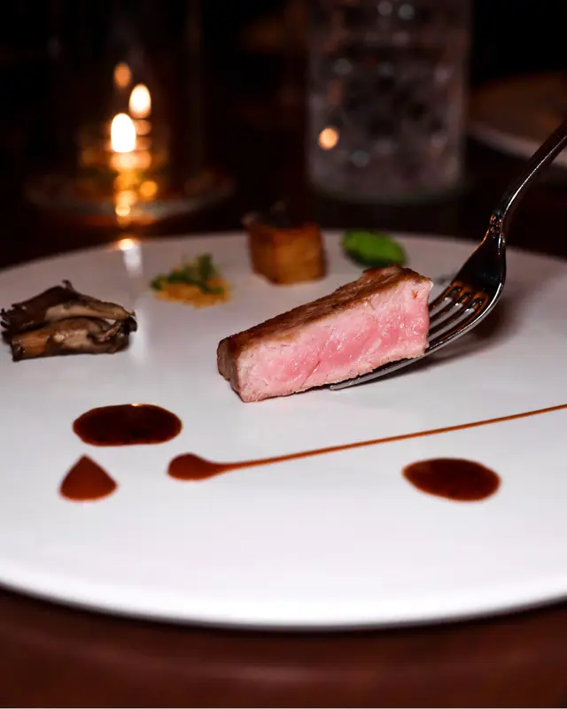 伴以黑松露片、千層焗薯及舞茸菇