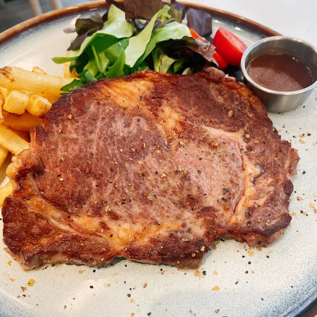 五分熟度拿捏精準,焦脆外殼下是漂亮的粉紅切面。牙齒陷入時能清晰感受到油花在舌尖化開,肉香混著炭香直衝鼻腔。附上的黑椒燒汁點到即止,更襯托出安格斯獨有的濃郁脂香。